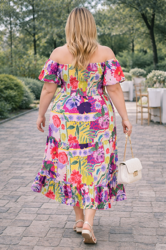 Robe florale féminine à volants