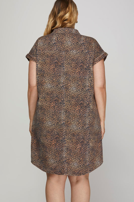 Robe blouse léopard en twill avec poches