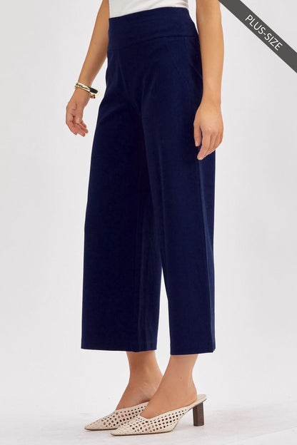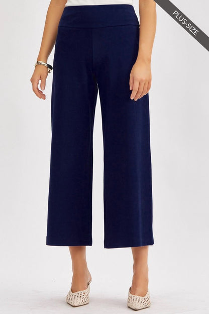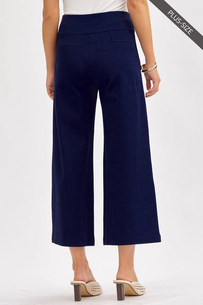 Pantalon propre à jambe large marine (26 po) avec bande large extensible à la taille style pull-on.