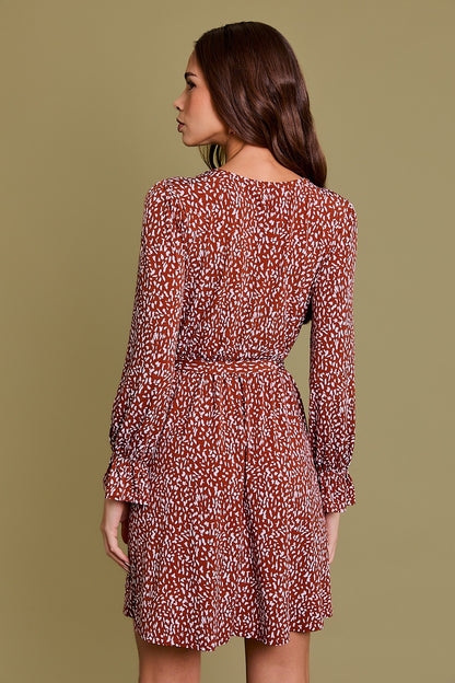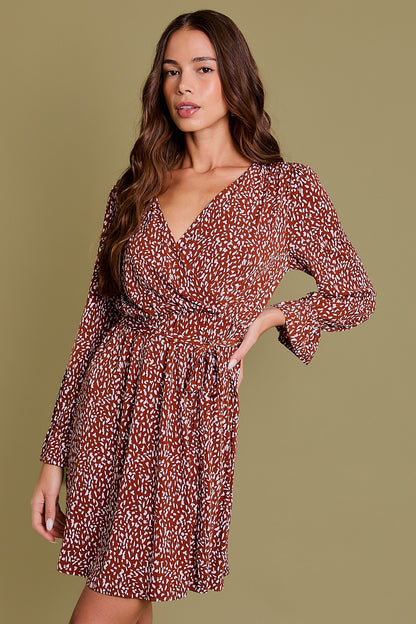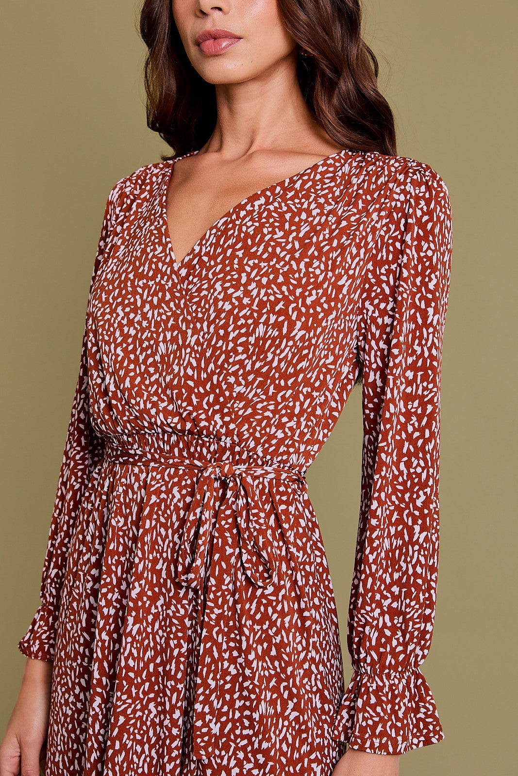 Robe porte-feuille taille plus dans les teintes de brun/crème avec manches longues et ceinture à la taille