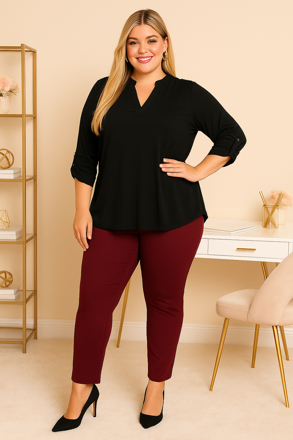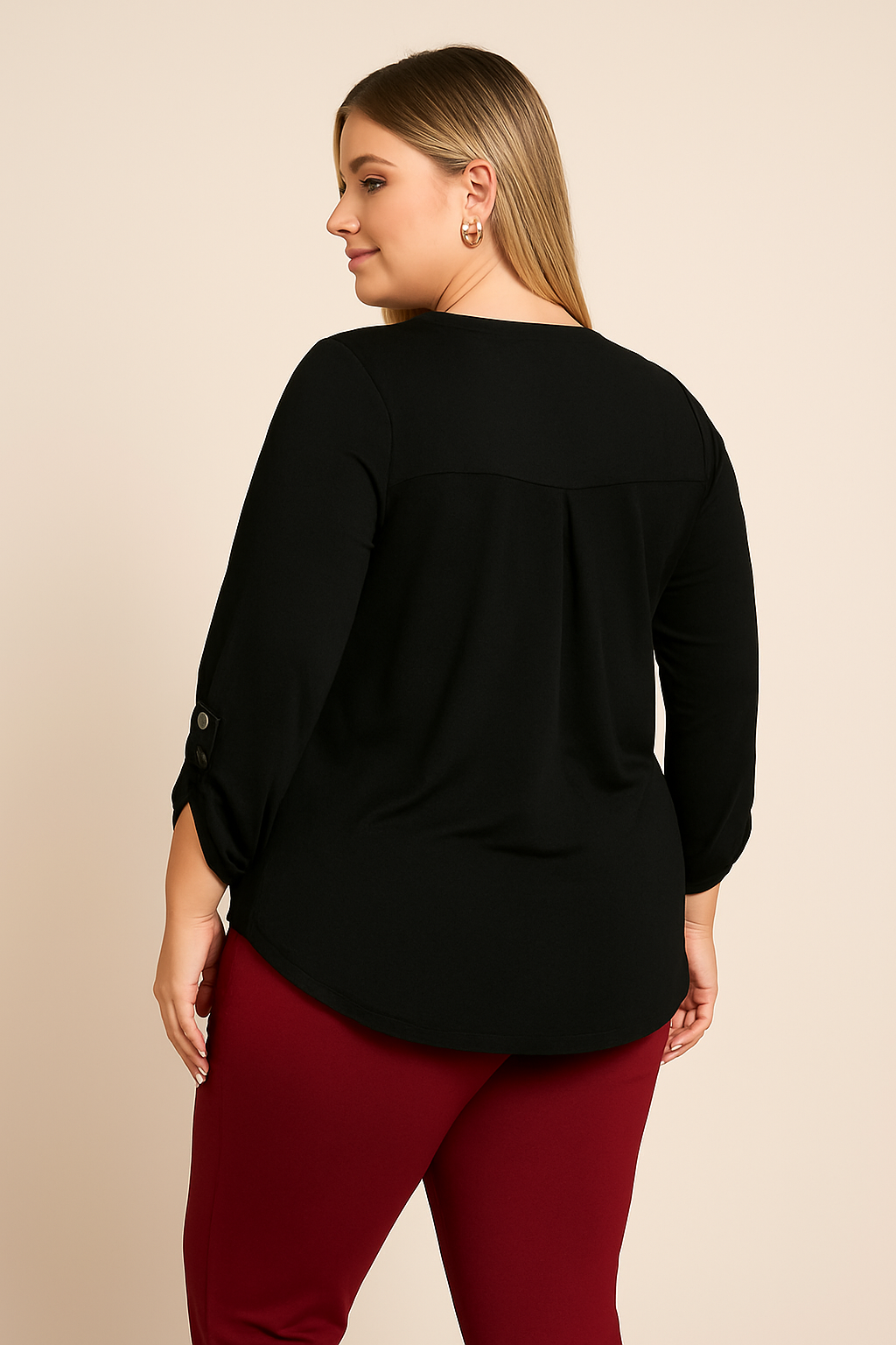 Notre haut Lizzy signature est fabriqué à partir d’un mélange de poly doux et luxueux qui offre un confort léger et infroissable. Conçu pour être facile d’entretien, ce haut de voyage est plus frais que le lin, ce qui en fait le choix ultime pour la vie en déplacement. Le Lizzy est également doté d’une encolure à col mao et de manches de 3/4" avec des détails de languette. Sa coupe décontractée et fluide et son ourlet subtil assurent une silhouette flatteuse pour toutes les occasions.
